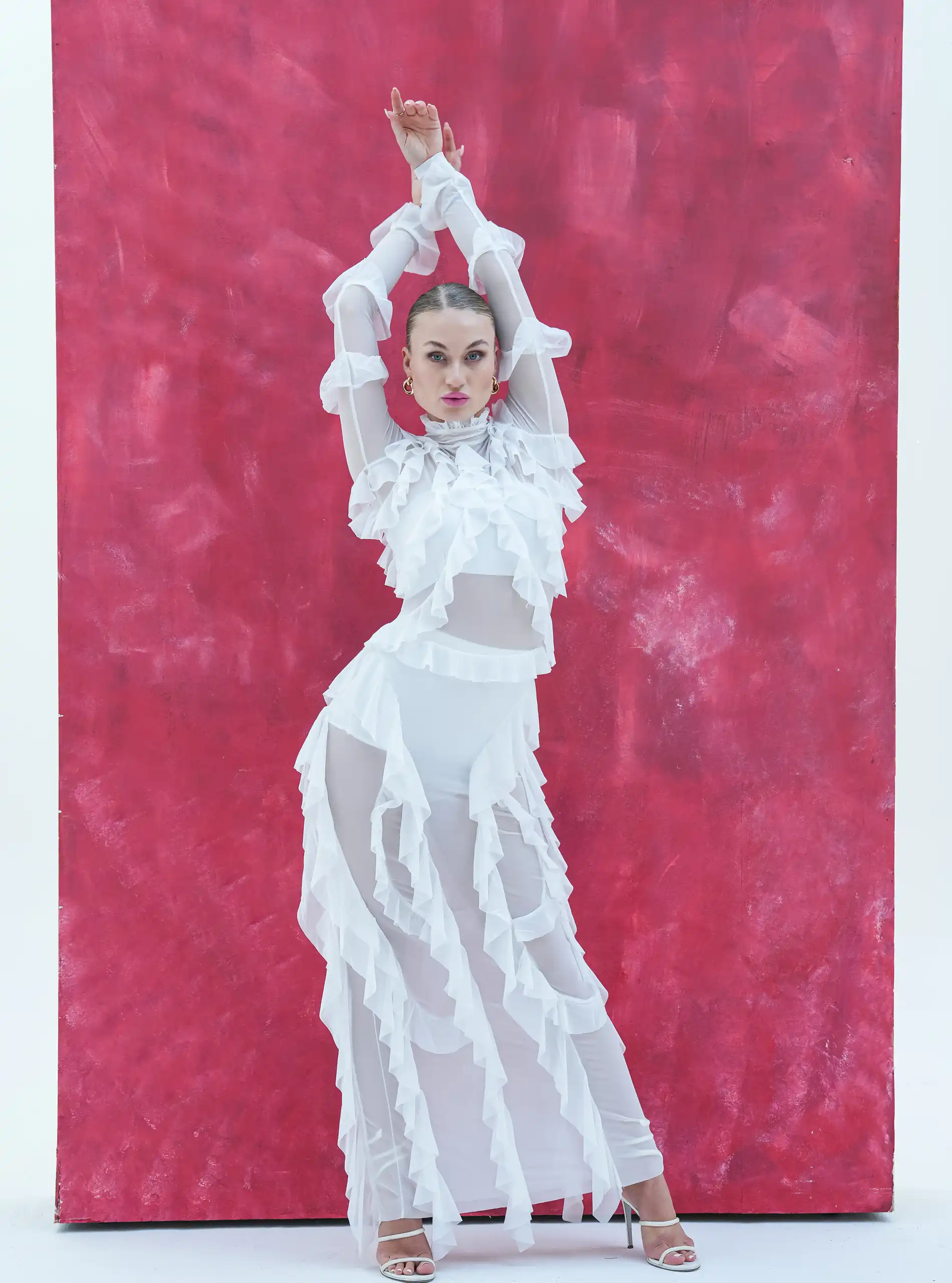Long sheer ruffled dress